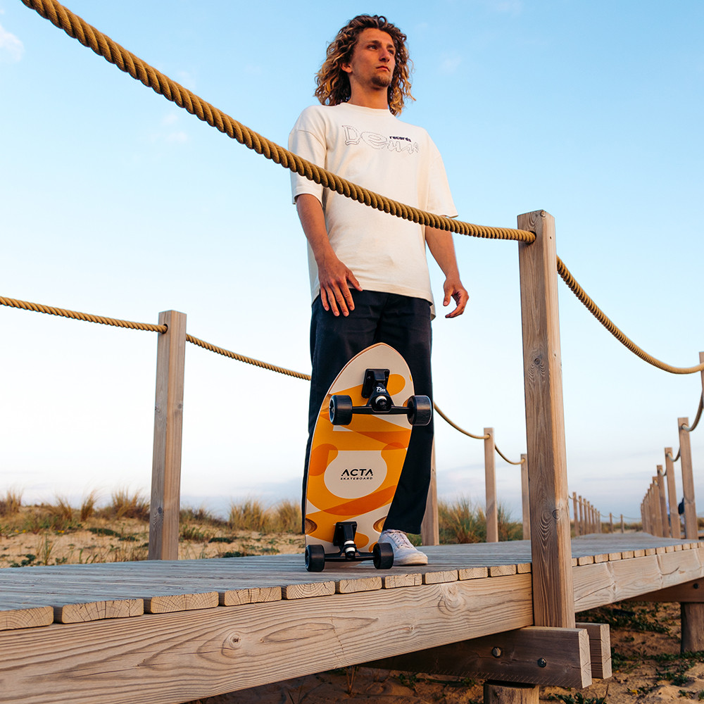 Az Acta Surfskate Cruiser egy igazán stílusos választás, amely a déli francia vidék szörf- és gördeszka kultúrájának legjavát hozza el. Az Acta márka 2020-ban született azzal a küldetéssel, hogy mindenki számára elérhetővé tegye a deszkás sportokat, kortól és szinttől függetlenül. A filozófiájuk egyszerű: soha nincs túl késő ahhoz, hogy belevágj a deszkázásba!