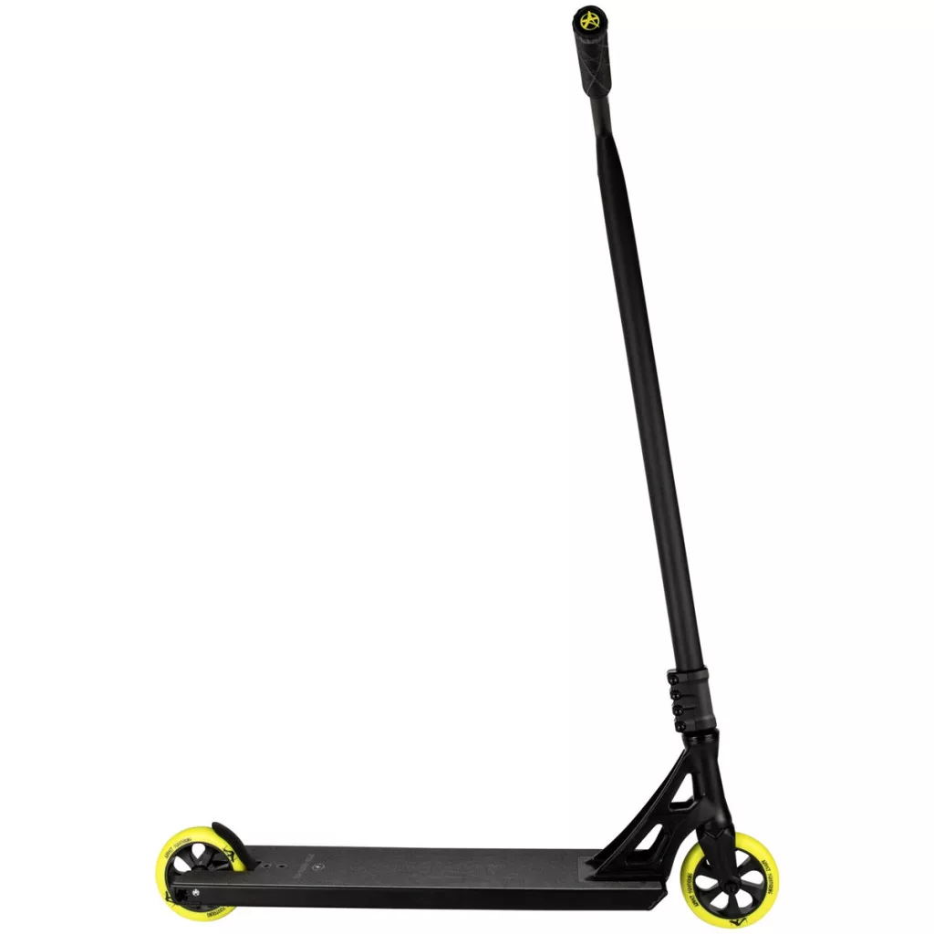 A 700 mm magas és 610 mm széles T-kormány brutális kontrollt és stabilitást ad, így a legkeményebb spotokon is biztosan uralod a mozdulataidat. Nem kell aggódnod a rezgések miatt, hiszen az SCS kompresszió mindig precíz mozgást biztosít, miközben a legdurvább erőhatásokat is kibírja. A 120 mm-es kerekek gyorsak és tapadnak, így garantáltan nem lesz gond, ha egy hosszabb grind után is kell még egy kis sebesség.
