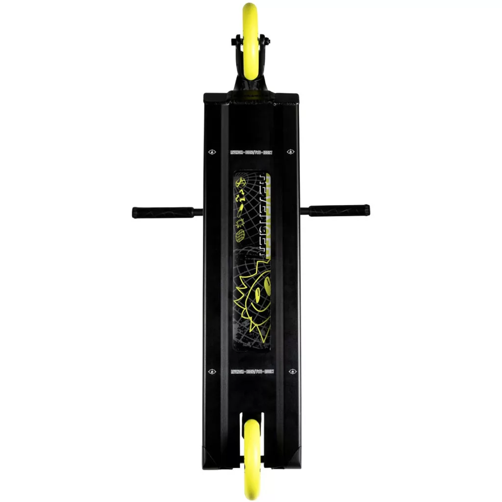 A lap sem kispályás: 590 mm (23.23”) hosszúságával és 165 mm (6.5”) szélességével tökéletes alapot ad a legmasszívabb trükkökhöz. Ha egyszer felugrasz vele egy korlátra, már le se kell jönnöd – a mérete és kialakítása miatt stabilan tart és biztosan csúszhatsz végig rajta. Nem számít, hogy ledge, rail vagy egy komolyabb gap a cél, a Revenger minden körülmény között hozza, amit elvársz tőle.