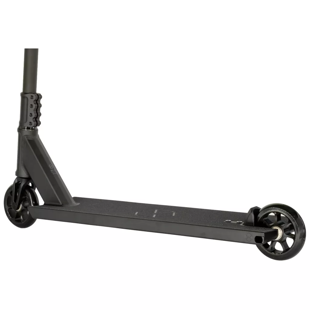 A Format lap integrált deck-endekkel és 83°-os fejcsőszöggel dolgozik, ami direkt, feszes frontendet ad. A self-locking emblémás tengely a villában nem csak egy apró technikai részlet, hanem valódi előny crooknál, bluntnál, smithnél, amikor számít, hogy a mozdulat tisztán fusson végig. Az Omni II fender minimalizálja a kerék érintkezését, miközben maximális lábteret hagy, így a foot placement nem kompromisszum kérdése.