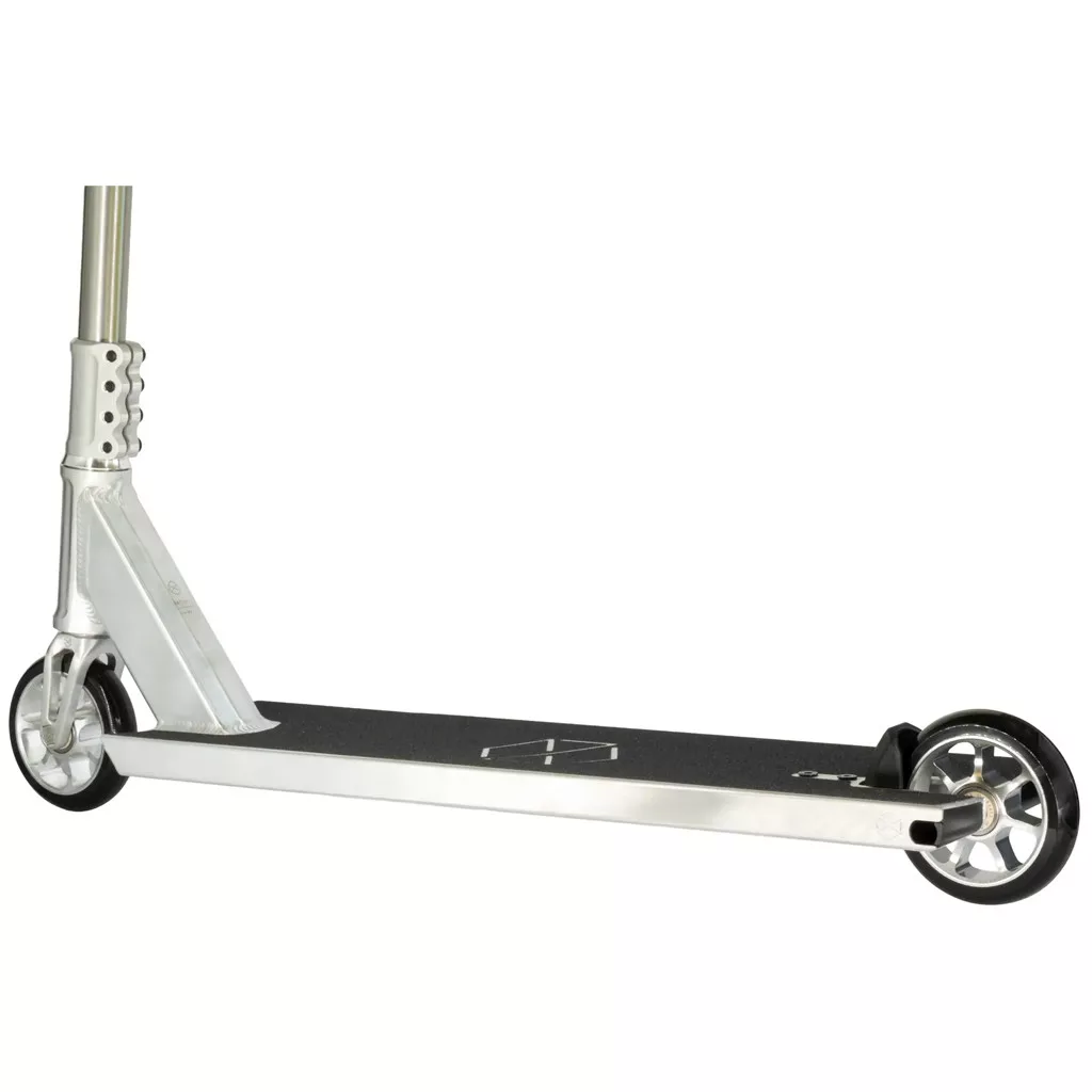 A Format lap integrált deck-endekkel és 83°-os fejcsőszöggel dolgozik, ami direkt, feszes frontendet ad. A self-locking emblémás tengely a villában nem csak egy apró technikai részlet, hanem valódi előny crooknál, bluntnál, smithnél, amikor számít, hogy a mozdulat tisztán fusson végig. Az Omni II fender minimalizálja a kerék érintkezését, miközben maximális lábteret hagy, így a foot placement nem kompromisszum kérdése.