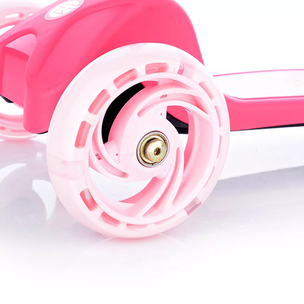 A LED világítással szerelt első és hátsó kerekek nemcsak jól néznek ki, de növelik a láthatóságot is, különösen alkonyatkor. Az eszköz összecsukása egyetlen gombnyomással történik, így a tárolás vagy szállítás sem okoz gondot – akár egy óvodai foglalkozás után is könnyen befér a csomagtartóba.