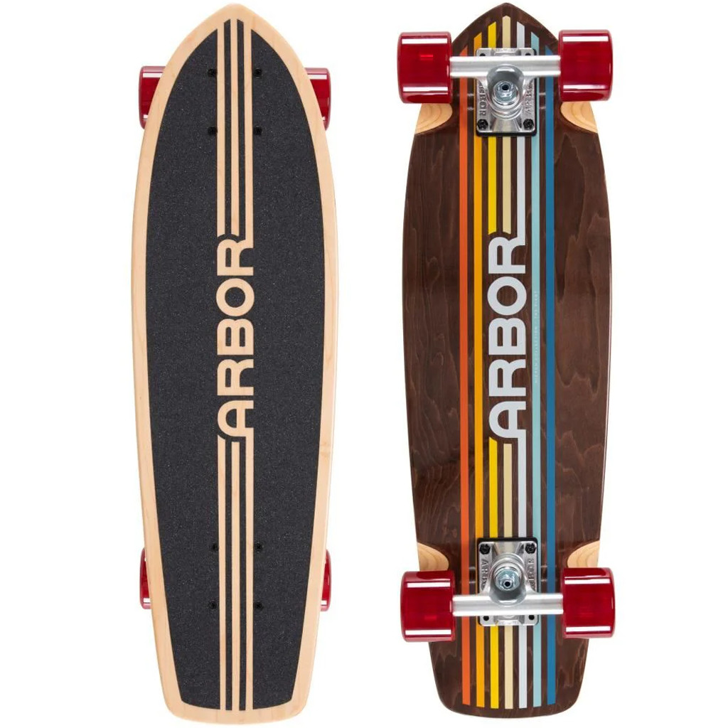The Arbor HBP 4.25” trucks are well matched to the 7.5” width, allowing the board to respond quickly to weight shifts without feeling twitchy. The 61 mm, 78A Easyrider wheels provide a soft, grippy roll, while the Momentum core helps absorb vibrations on rough pavement. ABEC 7 bearings ensure smooth and consistent speed.