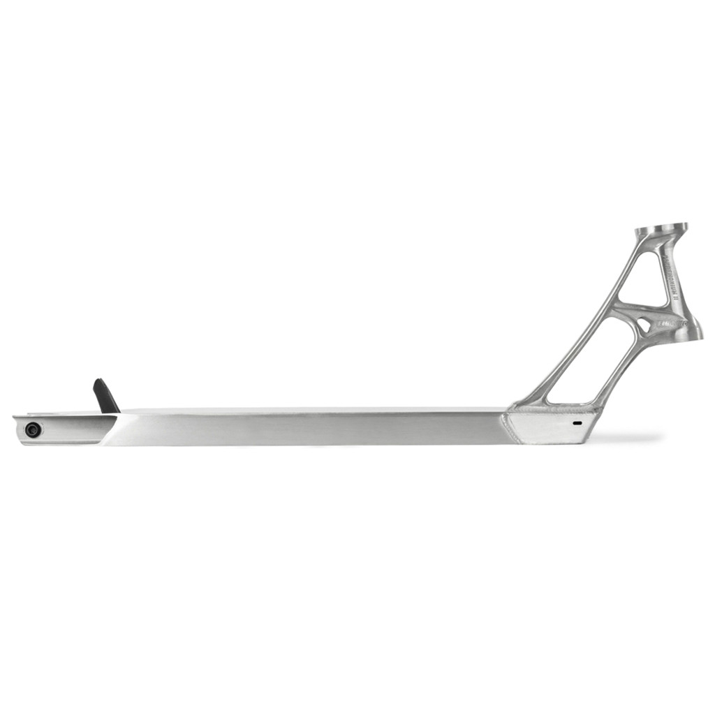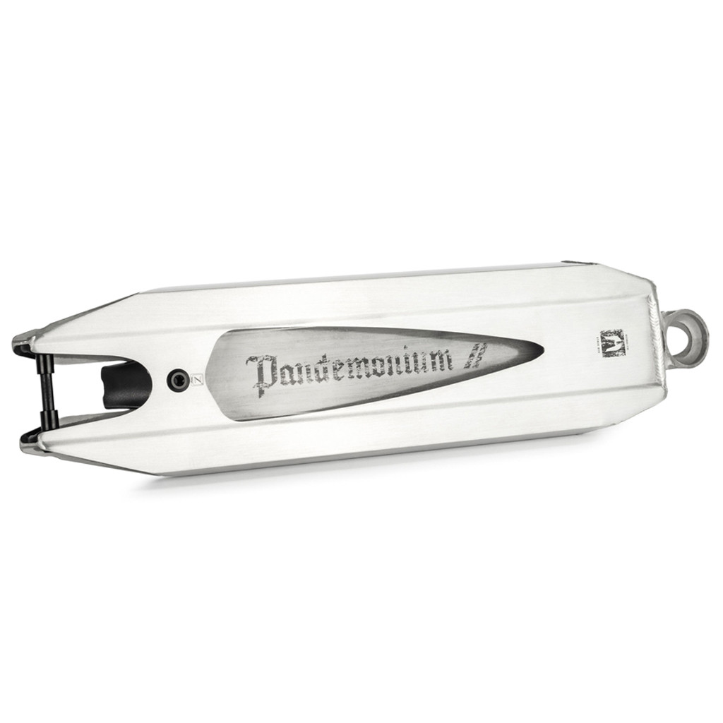 The Pandemonium V2 deck is crafted from 6082 aluminum, which is stronger than the commonly used 6061 alloy, ensuring even greater durability. Another new feature is its compatibility with 120 mm wheels, and it comes with a redesigned brake that reduces overall weight. The externally threaded Torx axles are stronger and more practical, requiring only one tool for tightening.