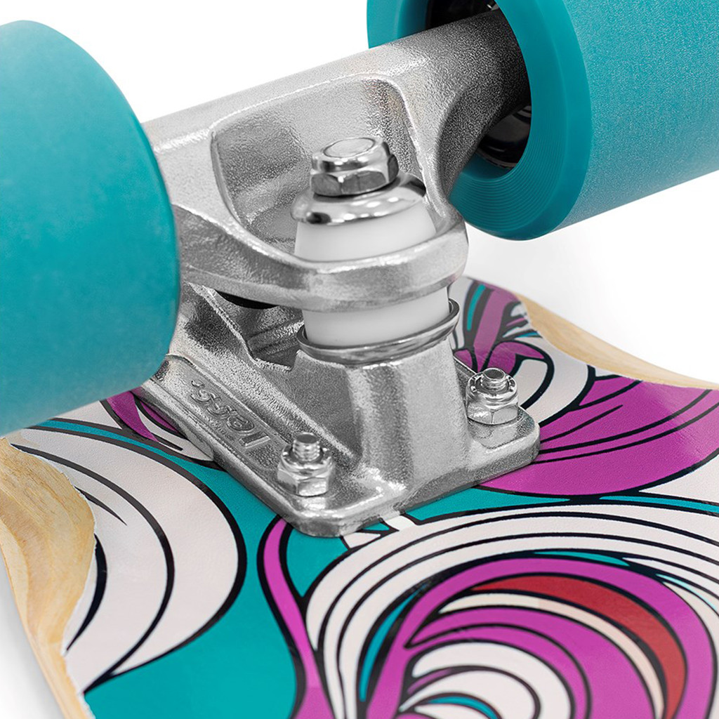The 36” length and narrower platform create a more direct connection under your feet. It’s not a sluggish cruiser, it’s more playful and reacts to subtle weight shifts. The flex is dialed just right to smooth out rough surfaces while still keeping control during carving.