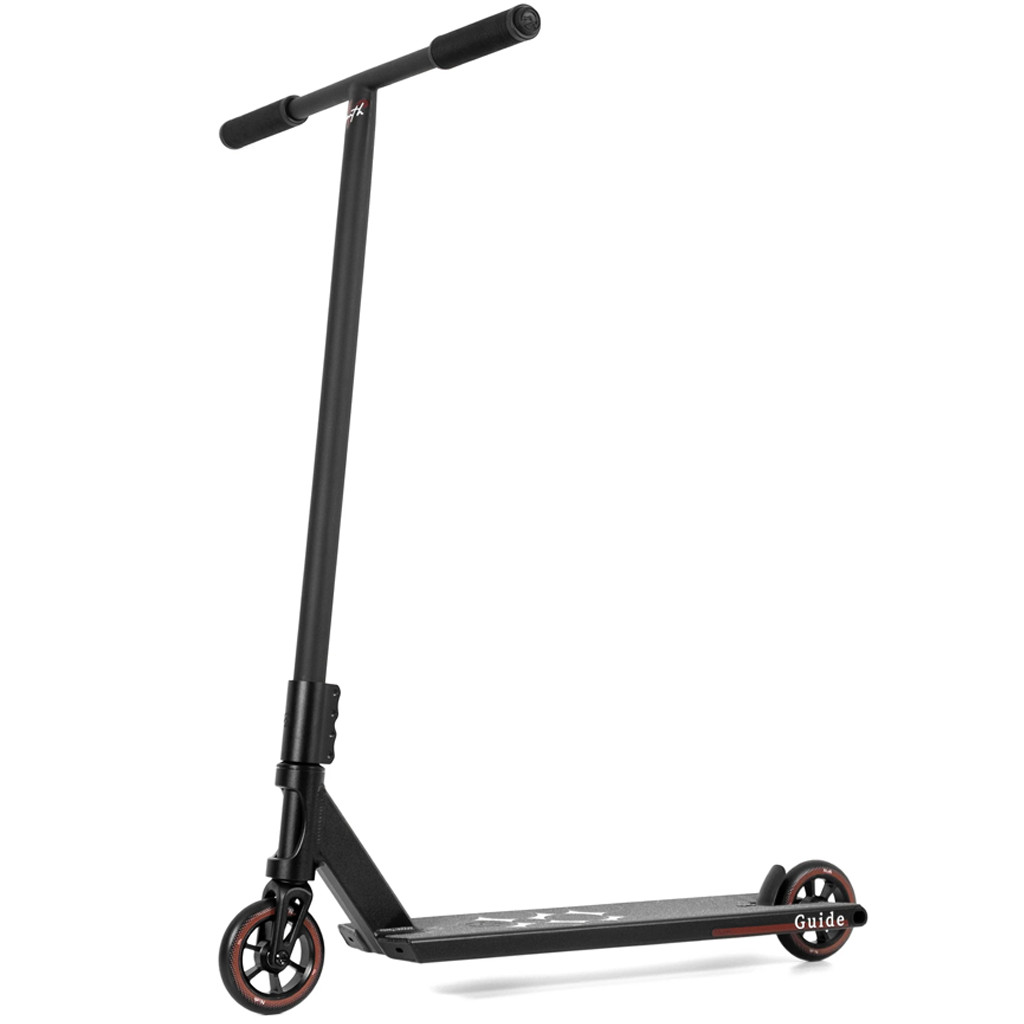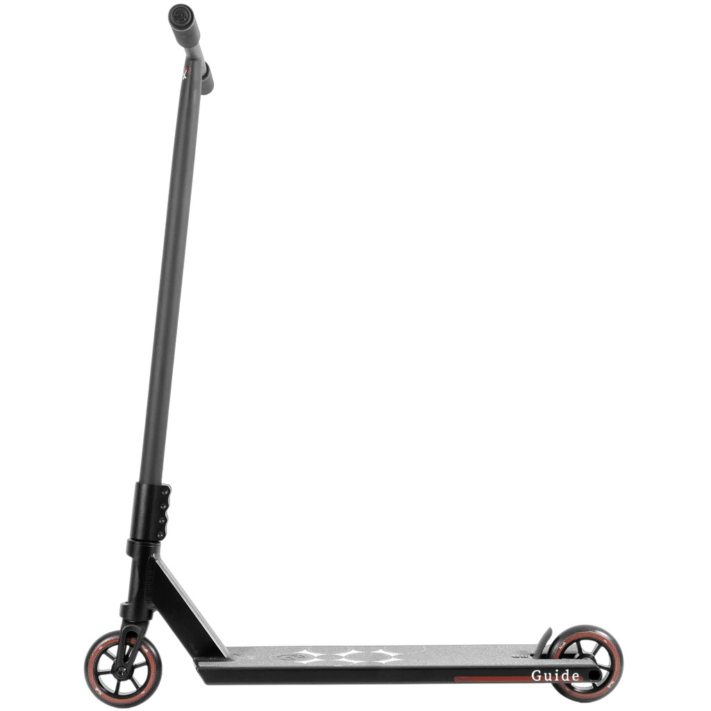 The idea behind the Guide series was to create a complete that doesn’t feel like a beginner compromise, but a true rider-focused base. The 4130 chromoly T bar delivers a tight, direct feel, while the SCS system provides a strong front end that can handle real abuse. The 110 x 24 mm wheels roll fast and hold speed well, giving the entire setup the confidence and presence of a larger build.