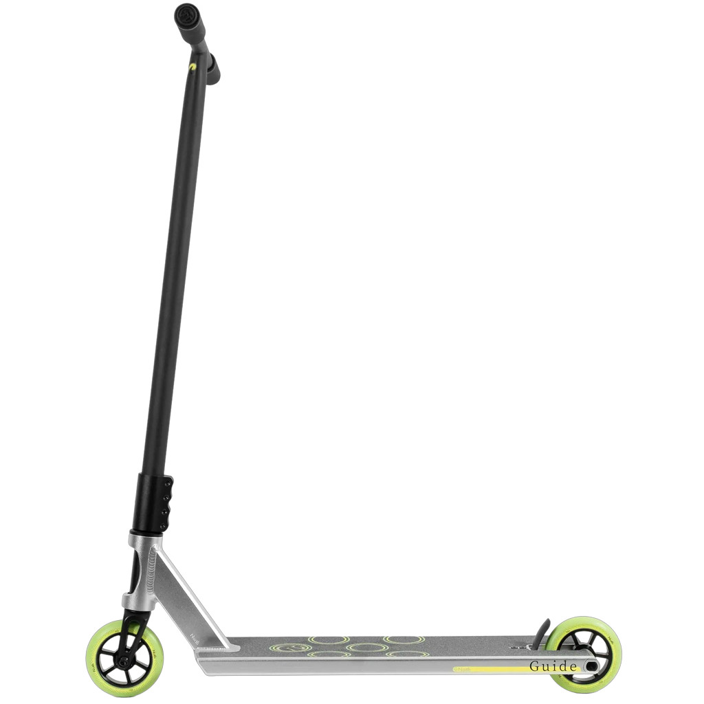 The idea behind the Guide series was to create a complete that doesn’t feel like a beginner compromise, but a true rider-focused base. The 4130 chromoly T bar delivers a tight, direct feel, while the SCS system provides a strong front end that can handle real abuse. The 110 x 24 mm wheels roll fast and hold speed well, giving the entire setup the confidence and presence of a larger build.