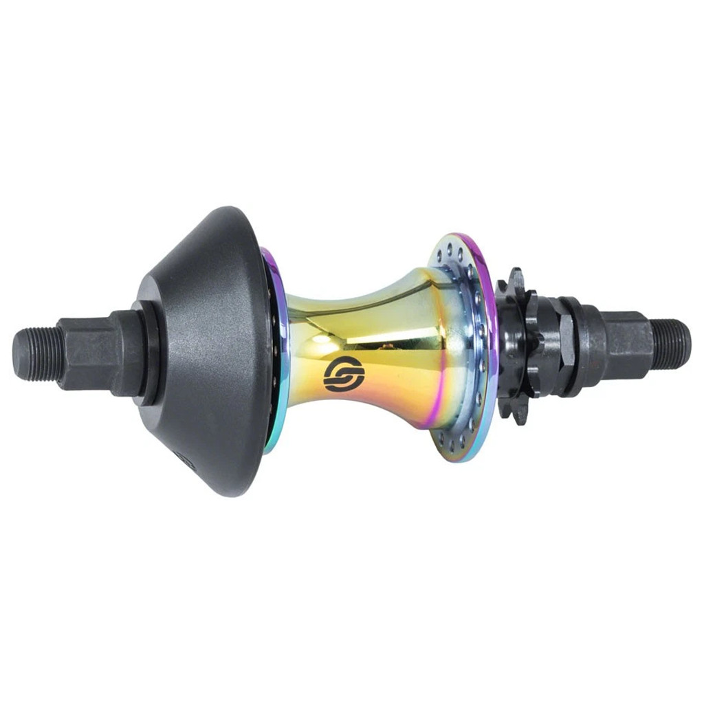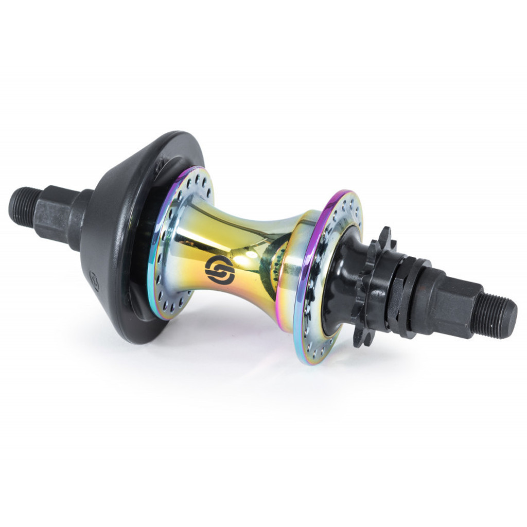 Inside the cassette, the 9T driver provides faster engagement with less slack. That’s not only noticeable on take-offs, but in any situation where you need precise power control. The sealed industrial bearings aren’t marketing either: better sealing, smoother rotation, and less maintenance hassle. The non-drive side plastic hub guard is a practical detail as well. It’s not there for looks, it actually takes the direct hits, protecting the hub shell from impacts.