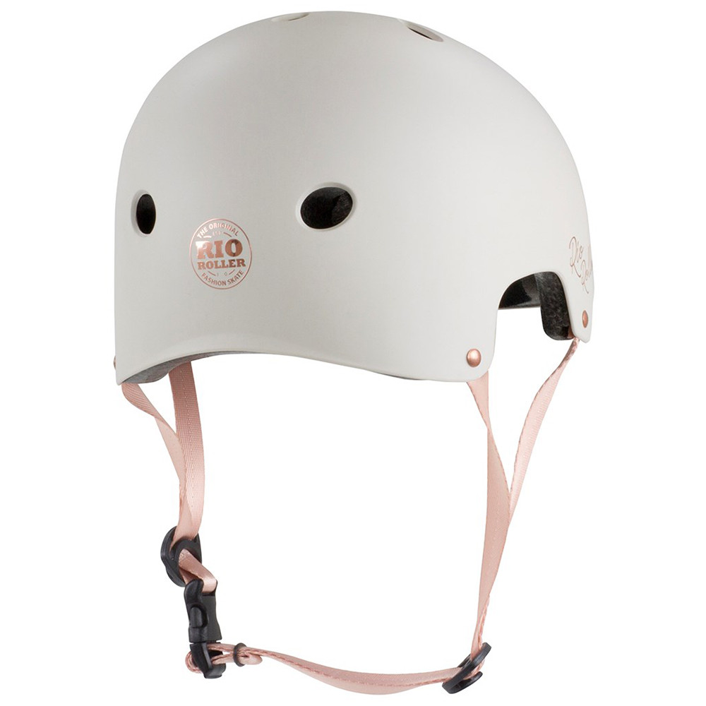 The Rio Roller Rose Helmet is a true standout among skaters and scooter riders with its elegant, stylish design and excellent protective features. This exclusive helmet boasts a sleek matte finish, complemented by rose gold-effect logos, rivets, and straps, adding a touch of luxury to its appearance.