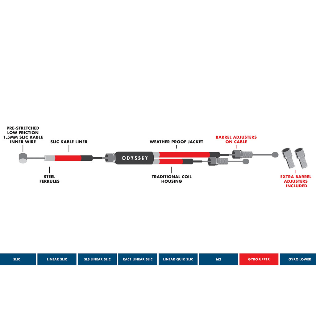 The cable is specifically optimized for Gyro systems, making it compatible with most detangler setups, especially the Odyssey GTX-S and G3 rotors. The precise fit and durable outer housing help ensure long-term reliability even under regular use.