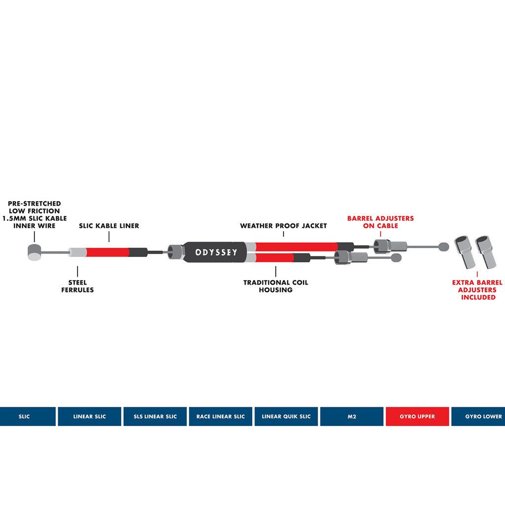 The cable is specifically optimized for Gyro systems, making it compatible with most detangler setups, especially the Odyssey GTX-S and G3 rotors. The precise fit and durable outer housing help ensure long-term reliability even under regular use.