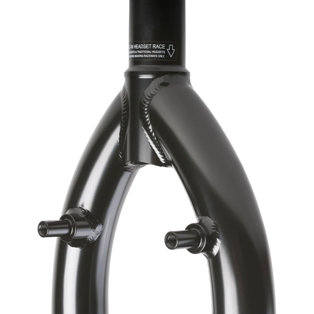 With a steep 25mm offset, this fork is tailored for technical, responsive riding, giving you quicker front-end control for nose manuals, spins, and precise tricks. The newly optimized 4mm thick dropouts not only improve strength but also provide extra clearance for pegs and hub guards, making it ideal for street sessions. The seamless, butted, and specially formed fork legs add to the modern look while enhancing strength and grind performance.