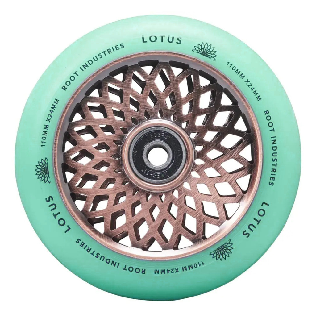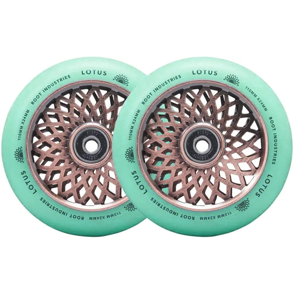 The Root Industries Lotus wheels are among the most outstanding innovations in the world of scootering, combining stunning design with technical excellence. The "lotus" patterned core is beautifully crafted from aircraft-grade aluminum alloy, ensuring both lightness and durability.