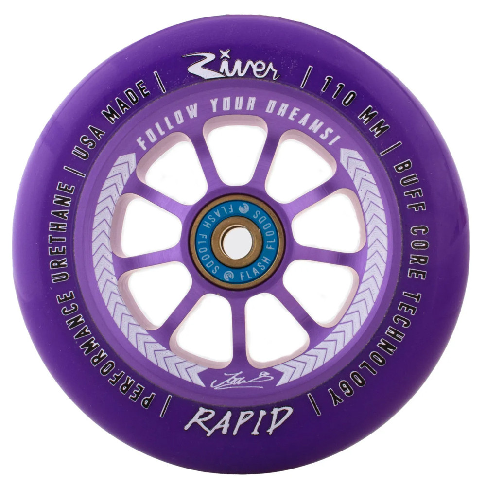 River Rapid wheels are not only strong and durable but also responsive, making them perfect for street riding or big airs in the skatepark. They ensure smooth performance, with BUFF Core Technology absorbing impacts, reducing the risk of de-hubbing, and providing a smoother ride. Bearing removal slots make quick bearing replacements a breeze, while pre-installed River Flash Flood bearings are ready for action right out of the box. The 9-spoked anodized 6061 T-6 aluminum core strikes the perfect balance between weight, strength, and durability, ensuring every trick is seamless.